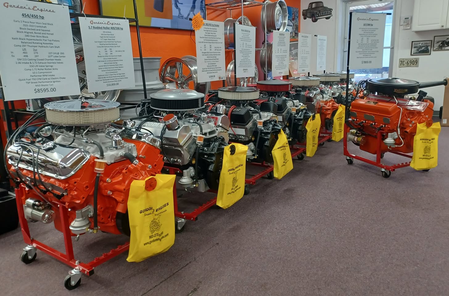 A couple months back, we got a fresh shipment of engines, and there’s a good chance a few are still hanging around. We’re talking about a 450-horse 454, a 590-horse 409 Brodix-headed small block, and the classic 300-horse 327 with double-hump heads and a Quadrajet.